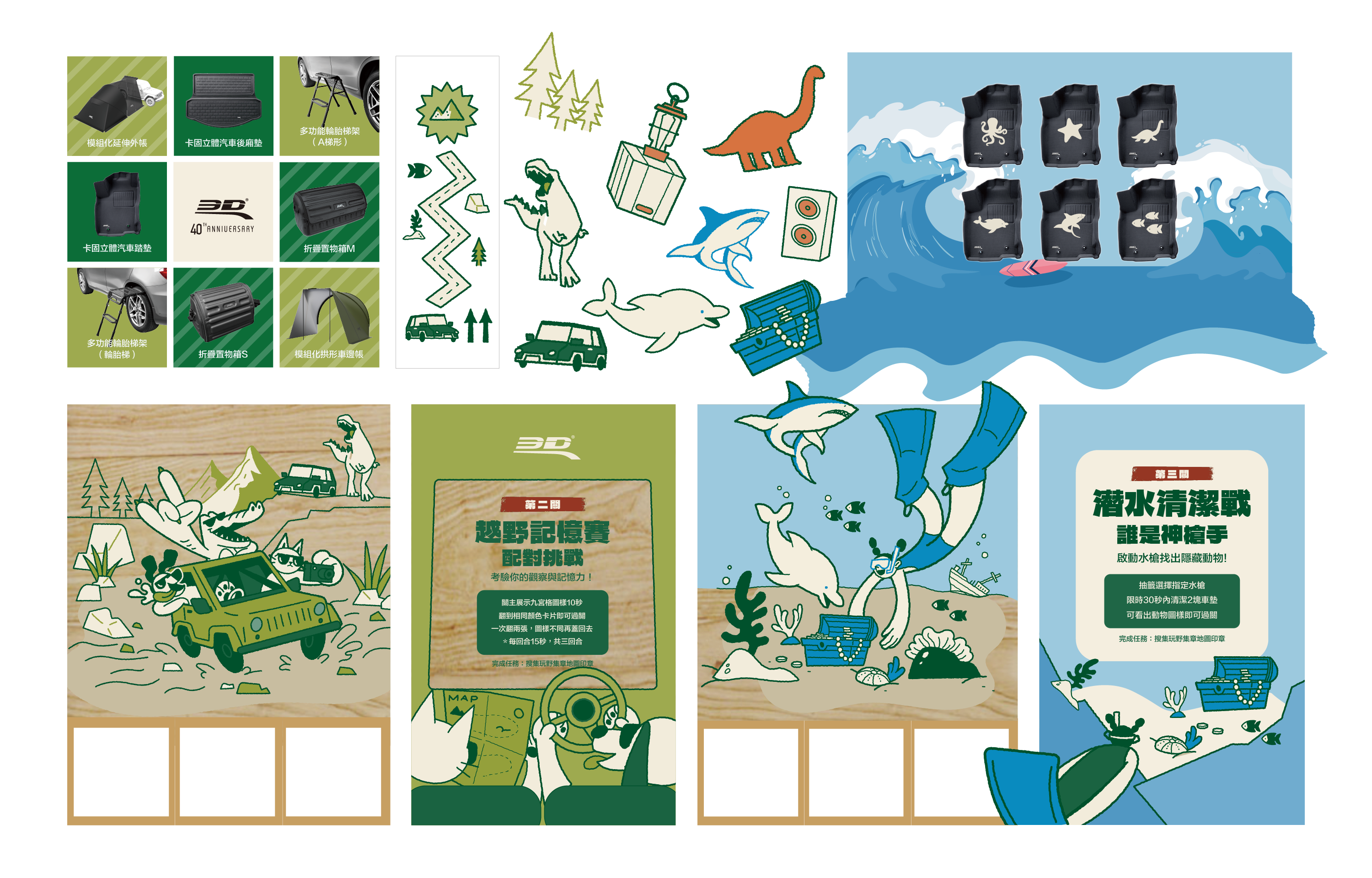 「玩野日常」以一趟輕裝戶外旅程為主軸,透過互動闖關將露營、越野、潛水轉化為可參與的日常體驗,讓消費者在遊戲中直覺理解產品的效率與實用性,重新定義戶外生活的輕鬆樣貌。