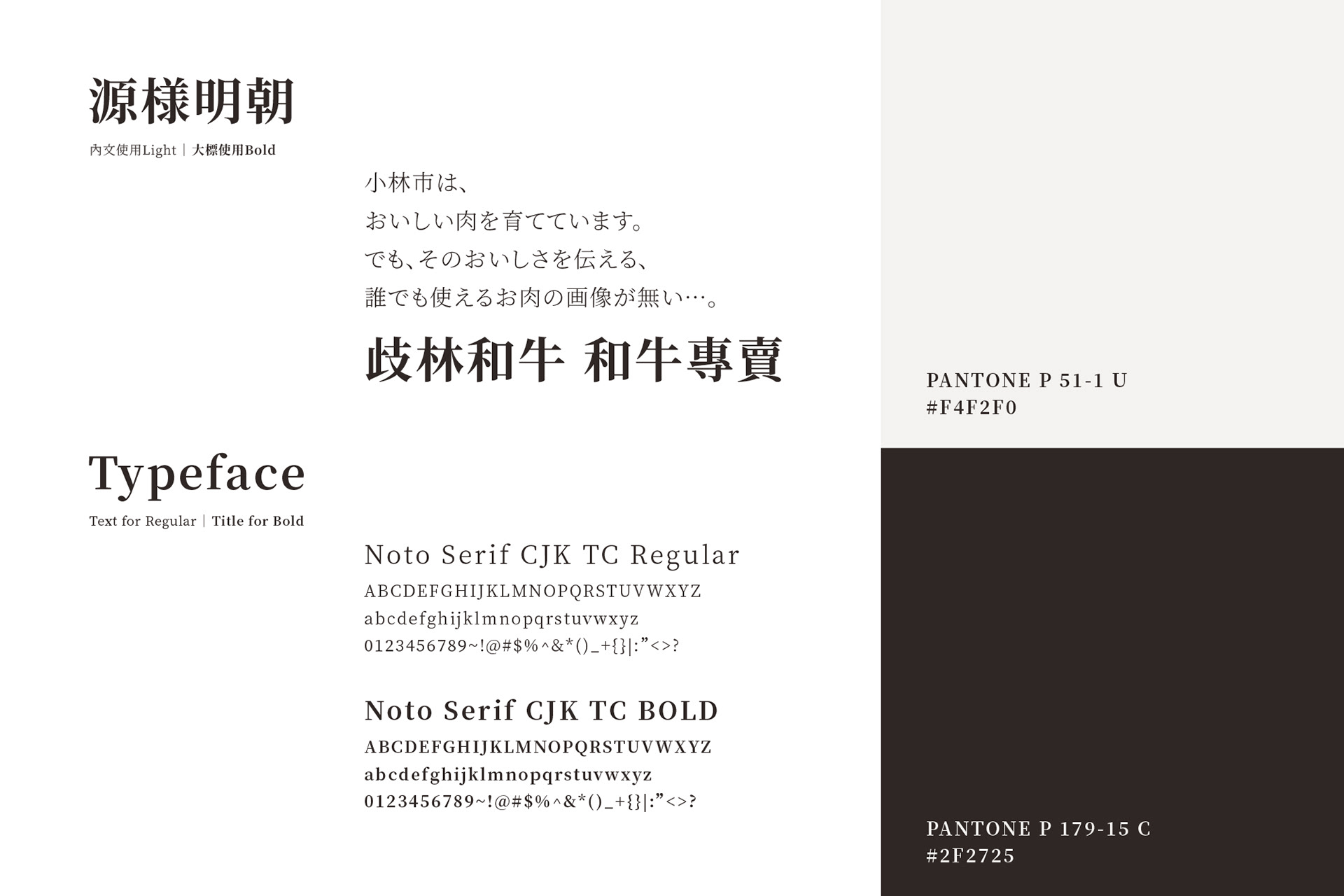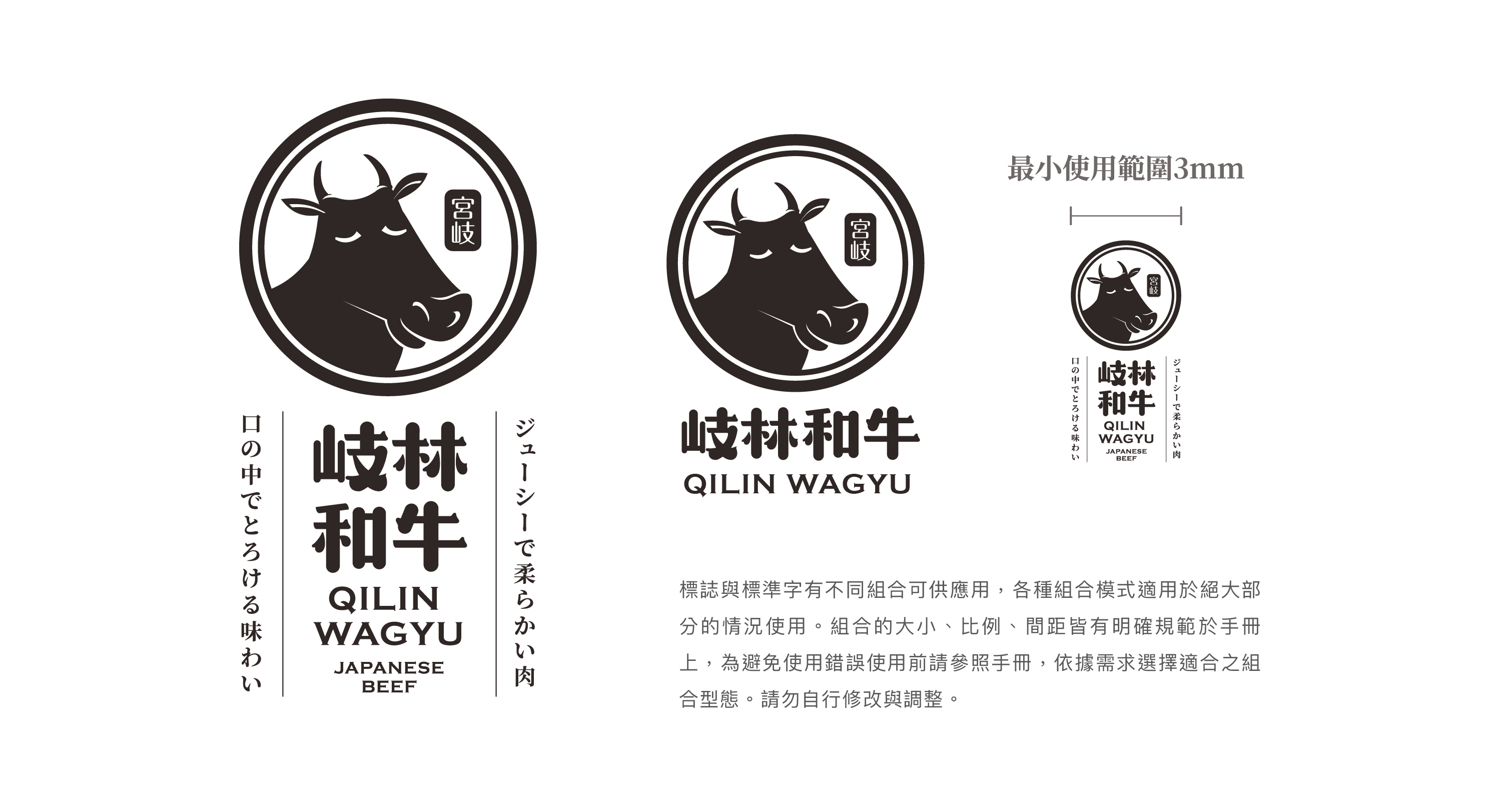 靈感來自日本宮崎縣小林市為了推銷當地產的黑毛和牛,提供許多素材供大眾使用。為了妥善利用圖庫素材,於是將擬人化的微笑和牛作為標誌,傳達品牌和藹可親且售價親民;筆畫圓柔且尾端帶點突起牛角般造型作為標準字,呈現出平易近人卻不失專業感的形象,並運用圖庫中的和牛素材進行設計,表現出品牌獨有的視覺呈現,希望能將小林市的黑毛和牛介紹給更多人認識。